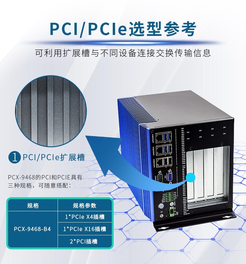 PCI/PCIE 擴展插槽 | PCX-9468-B4 | 1*PCIe X4插槽(PCIE X2信號) | ||||||