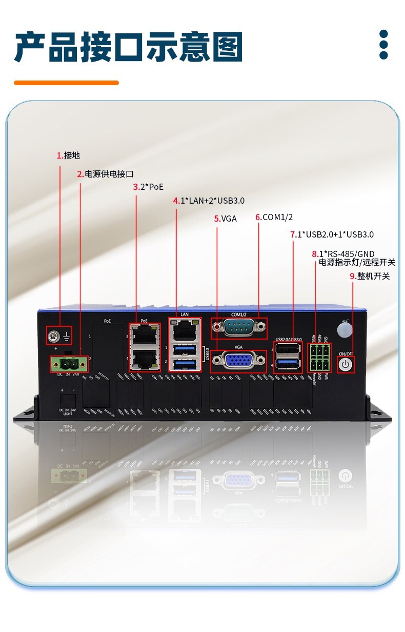 5. 3*Intel I225-AT 10/100/1000M網(wǎng)口,其中兩個支持PoE